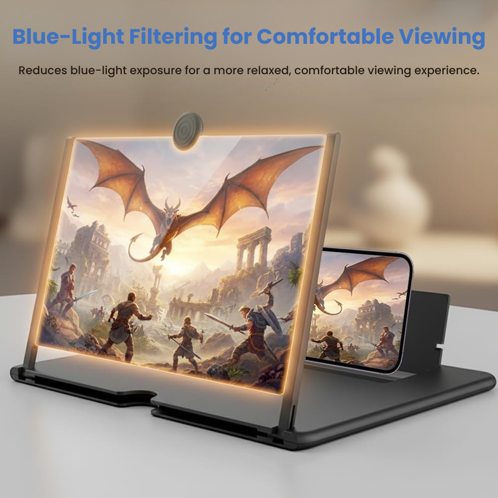 Just place your phone in the stand, flip up the lens, and enjoy a brighter, bigger, eye-friendly display — no apps, charging, or setup required.